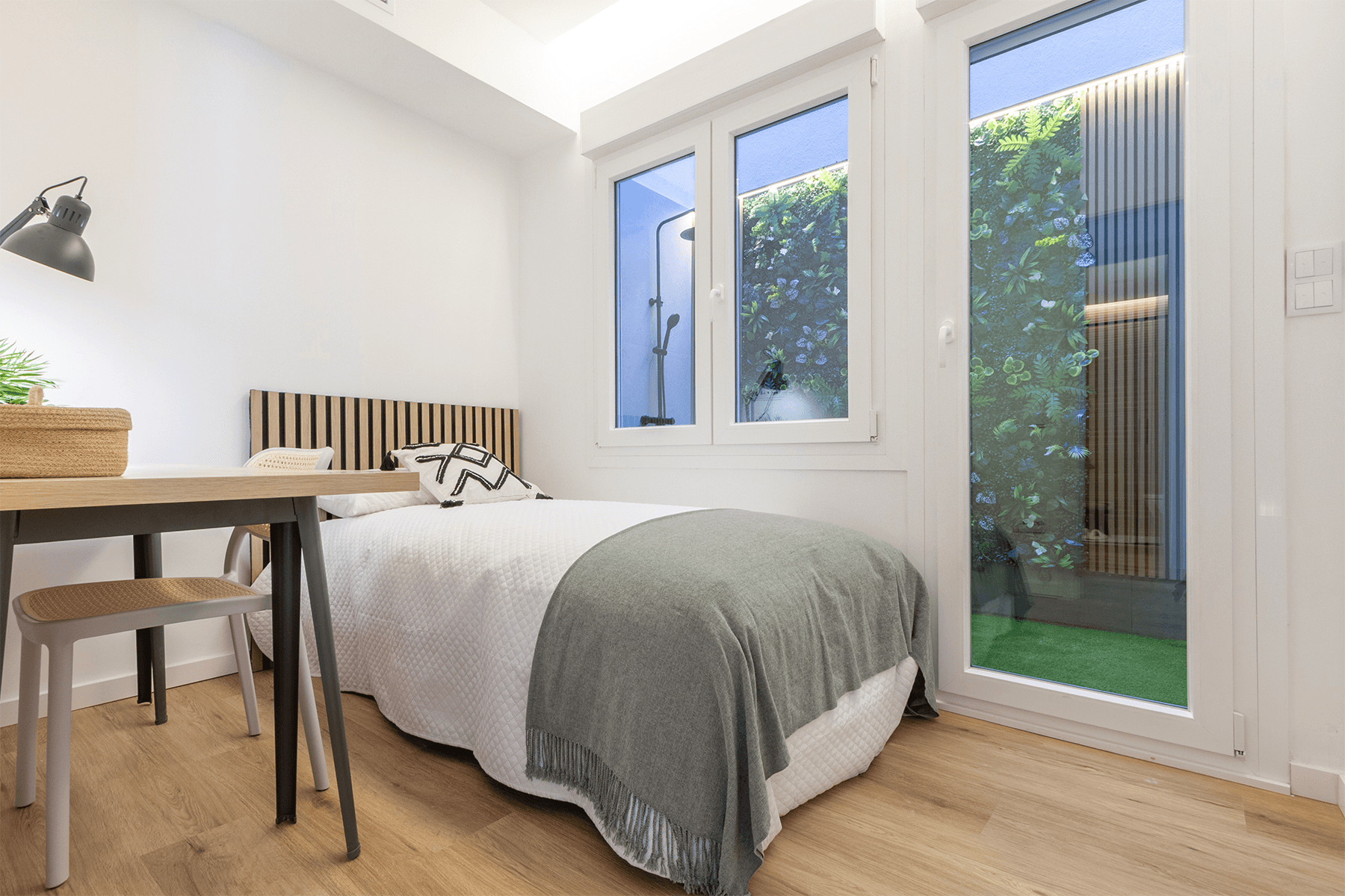 Reformamos un primer piso sin ascensor en el centro, ideal para alquiler habitacional. Se redistribuyó el espacio, sumando una habitación y un baño. Con acabados de calidad y diseño moderno, cada estancia incluye canapé, armario, escritorio y televisión. Se entrega listo para rentar, con gestión incluida y alta rentabilidad asegurada.
